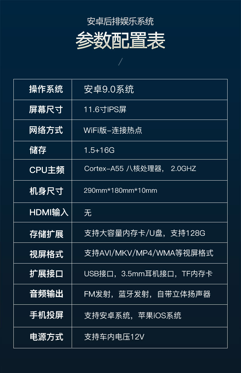 11.6寸后排娛樂系統(tǒng)(WIFI版 1.5+16)